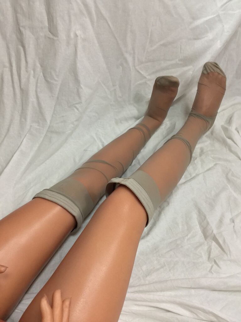 黒い網タイツは、色移りしそうだったので、はかせる前に、下に別のタイツを装着。